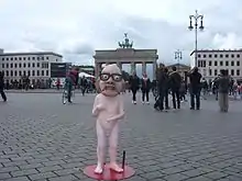 Citizen Włapko (Citizen Skimmer, Polish: Obywatel Włapko) is the name of a 1.10 meter-high sculpture symbolizing a corrupt official.[1] The satirical figure shows a naked boy with the head of a mature man wearing glasses with a mustache and beard. His right forefinger pointing to his left palm indicates a request for money. There is a bomb next to his left foot, which symbolizes the explosive nature of the request, and the nudity symbolizes the whole, "naked" truth.