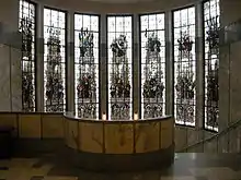 Stained glass windows in the half circular stairwell, made by Joep Nicolas.