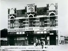 On 29 June 1918 the new Council Chambers building located on South Terrace south of the Bankstown railway station (now No. 9 Bankstown City Plaza) was officially opened by the mayor, A. Townsend. Completed to a cost of £4,000, the new Council Chambers building was designed by prominent architect and mayor of Kogarah, Charles Herbert Halstead, and built by A. G. Swane. At the time of opening the street frontage included a post office, and a branch of the Australian Bank of Commerce.[26][27] This remained the Council's primary meeting place and offices until new offices in the Civic Centre to the north were completed in 1963.[28]
