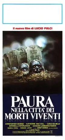 City of the Living Dead (Italian: Paura nella città dei morti viventi, lit.'Fear in the city of the living dead', also released as The Gates of Hell) is a 1980 Italian supernatural horror film co-written and directed by Lucio Fulci. It stars Christopher George, Catriona MacColl, Carlo de Mejo, Antonella Interlenghi, Giovanni Lombardo Radice, and Janet Agren. The film follows a priest whose suicide opens a gateway to hell that releases the undead. A psychic and a reporter team up to close it before All Saints' Day.