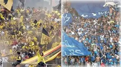 ![]() Left: Barcelona's Barra Brava la "Sur Oscura" Right: Emelec's Barra Brava "La Boca Del Pozo" | |