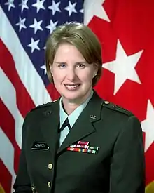 Claudia Jean Kennedy (born July 14, 1947) is a retired lieutenant general in the United States Army. She is the first woman to reach the rank of three-star general in the United States Army. She retired in 2000 after 31 years of military service.
