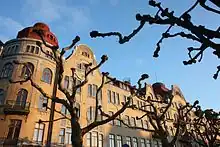 The municipality of Lund planned a rectangular zoning plan to the east of the square in the late 19th century, which was never built. Instead the Spoletorp area was built to the north of the square, which is an example of a well-preserved lush stone house block from the early 20th century. The stone house planned to the northeast opposite the All Saints Church were never built, instead the Lindeberg school and the Ribbing sanatorium were built in a lush and respected park milieu. There later was discussion about a "renovation plan" for the square, whose result was that all houses in the area, except for one Art Nouveau building on the south side of the square from 1900 were preserved. A warehouse and office build was built in the place of this building from 1975 to 1997, and this building now significantly dominates the area around the square.