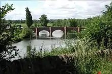 In 1822 the Thames Navigation Commissioners built the 12 mile (800 m) long Clifton Cut, a navigation that bypasses a shallow and difficult stretch of river.[1] It ends with Clifton Lock, 12 mile (800 m) above Clifton Hampden ferry. In 1867 the ferry was replaced by the Clifton Hampden Bridge, a brick structure designed by George Gilbert Scott.[5] This was a toll bridge until 1946, when Berkshire and Oxfordshire county councils took it over. The Barley Mow just on the far side of Clifton Hampden Bridge is in Long Wittenham parish. In 1889 the novelist Jerome K. Jerome featured the village and the Barley Mow, in his book Three Men in a Boat.[6]