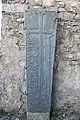 In 2013, an archaeological geophysical (magnetometer) survey was undertaken at the site and the surrounding fields which recorded a double ditch circular boundary surrounding the graveyard with the standing high cross within and part of the complex. "On its south and east sides, the graveyard appears to once have occupied a more extensive area. In an arc around the graveyard from the north, to the west and south-west sides, at the edge of the plateau of land where the downslope to the valley floor begins, are the outlines of a double circle with diameters of some 80m and 95m. This looks like a precinct similar to that at Carrowmore, but in a much more complex landscape setting."[3] The findings from the survey work have suggested that there is a deeper timeframe for occupation at Clonca, perhaps as a precursor to the ecclesiastical establishment.[4] In scale and outline structure both the Carrowmore and Clonca complexes are comparable with, for example, the combined inner and middle enclosures of Nendrum as they survive in their visible stone-walled form.[5]