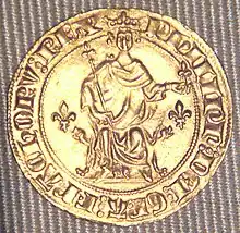 Philippe le Bel's golden Florin, also called "Petit Royal assis" ("Small seated Royal") was the first French gold coin to reach major circulation. It was first minted in August 1290. Its popularity was due to the fact that it was an authentic Florin, with a weight of 3.54 grams, and entirely made of pure gold (1.000 title). It was circulated without problem among the gold Florentine Florin and their imitations throughout Europe. At minting, the coin was attributed an account value of 10 sols tournois (half a pound).[1]