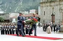 President Ronald Reagan laying a wreath at Simon Bolivar's statue in Bogota in 1982.