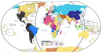 A colonial empire is a collective of territories (often called colonies), either contiguous with the imperial center or located overseas, settled by the population of a certain state and governed by that state.