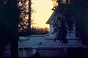 The house above appears a light cream during midday, but seems to be bluish white here in the dim light before full sunrise. Note the color temperature of the sunrise in the background.