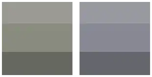 For artists, most pigments and papers have a cool or warm cast, as the human eye can detect even a minute amount of saturation. Gray mixed with yellow, orange, or red is a "warm gray". Green, blue, or purple create "cool grays". Note that this sense of temperature is the reverse of that of real temperature; bluer is described as "cooler" even though it corresponds to a higher-temperature black body.