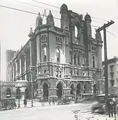 City Hall was demolished in a fire that began about 8 p.m. on January 12, 1921.[1] At the time, about 100 people were attending a basketball practice inside, and others were attending a meeting of City Council at the same time. There were no injuries during the incident. James Thurber, later known for his cartoons, was covering the City Council meeting as a Columbus Dispatch reporter.[6] Sixteen engine companies and six truck companies arrived to fight the fire, setting numerous hoses onto the fire by 8:30 p.m. from multiple areas, including from atop the roof of the Grand Theater building.[1]