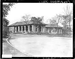 The park was largely completed by 1920, when Jensen was removed from his position by Illinois Governor Frank Lowden. The only uncompleted section was the refectory and boathouse. The new West Park Commissioners ignored Jensen's plan and instead hired local architectural firm Chatten & Hammond, who completed the structure in 1923. Although a contradiction to the rest of the park, the refectory was well received. Works Progress Administration funds in the late 1930s allowed for the conversion of an old stable building into a gymnasium. The funds also allowed for the replanting of the landscape. In 1953, the southern 9 acres (3.6 ha) of Columbus Park were demolished to make way for the Eisenhower Expressway. The waterfalls and surrounding landscape were restored in 1991; the refectory was restored a few years later. The park was listed on the National Register of Historic Places on May 20, 1991, and designated a National Historic Landmark on July 31, 2003.[2] It is considered one of "150 great places in Illinois" by the American Institute of Architects.[3]