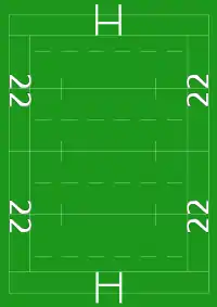Additional lines differ markedly with Canadian football fields marked at every 5 yard interval, whereas rugby union fields only have two further solid lines called the 22 metre lines and four broken lines each halving a half (resulting in four quarters and being translated as "quarter lines" in some languages). The dotted lines are made of two 10 metre lines on each side of the halfway line and two 5 metre lines before each goal line. Rugby union fields also have another set of dotted 5 metre lines.