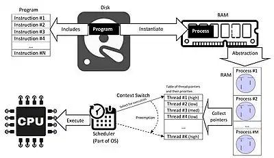 If the executable is requested for execution, then the operating system loads it into memory and starts a process.[3] The central processing unit will soon switch to this process so it can fetch, decode, and then execute each machine instruction.[4]