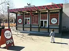 Conflict Kitchen was a take-out restaurant in Pittsburgh that served only cuisine from countries with which the United States was in conflict.[3] The menu focused on one nation at a time, rotating every three to five months, and featured related educational programming, such as lunch hour with scholars, film screenings, and trivia nights. After opening in 2010, the restaurant introduced the cuisines of Iran, Afghanistan, Cuba, North Korea, Venezuela, Palestine, and most recently, Iroquois. Referring to the informational brochures distributed with meals, NPR described the restaurant as "an experimental public art project—and the medium is the sandwich wrap."[4]