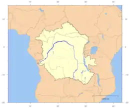 Congo is a traditional name for the equatorial Middle Africa that lies between the Gulf of Guinea and the African Great Lakes. The basin begins in the highlands of the East African Rift system with input from the Chambeshi, the Uele and Ubangi rivers in the upper reaches and the Lualaba River draining wetlands in the middle reaches. Because of the young age and active uplift of the East African Rift at the headwaters, the river's yearly sediment load is very large, but the drainage basin occupies large areas of low relief throughout much of its area.[5] It is delineated largely by swells including the Bie, Mayumbe, Adamlia, Nil-Congo, East African, and Zambian Swells.[6]