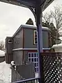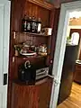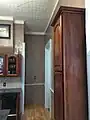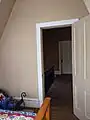 The interior features elaborate and extensive woodwork, quarter-sawn oak floors throughout the house, one of the longest cantilevered staircases on the East Coast of the United States, a large and ornate antique Eastlake-style chandelier in the dining room, and the only known existing installation of M.H. Birge & Sons block-printed peacock wallpaper ca. 1915. The home was constructed by the owners of Conklin Wagon Works, one of Olean's most important industries in the late 19th century. It was subsequently owned by the Mountain family, who operated the Mountain Clinic Infirmary, and is currently an owner-occupied single family residence not open to the public. On the morning of October 8, 2023 the house caught fire, resulting in the residents being displaced and a total loss of the historic interiors.[2]