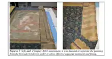 8. lined the paintings with an aqueous adhesive mixture of animal glue and wheat flour, risking moisture penetrating the ground and paint layers from behind.