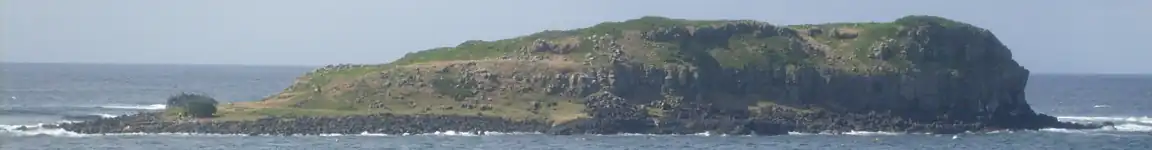 Cook Island is formed of “rocks from the Lismore Basalt Group, formed by lava flows from the Mount Warning Shield Volcano approximately 20 million years ago.”[2]:2 The Island is a “protrusion of eroded basalt” of a maximum height of 24.8 metres (81 ft) above sea level and topped with a plateau. The western side of the island has a “gentle” slope while the remaining sides are “sheer cliffs” dropping to “low-lying rock shelves”. The top of the island and its western side are overlaid by a “shallow cover of topsoil.” A “semi-permanent freshwater basin” is located in the island's northern side.[2]:2