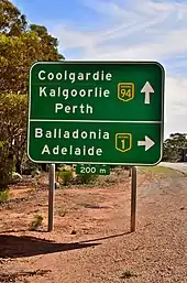 - 1 2 Main Roads Western Australia (28 February 2011). "Goldfields-Esperance Network" (Map). Intergrated Service Arrangement. 1:5,263,158. Government of Western Australia. Archived from the original (PDF) on 3 August 2013. Retrieved 22 April 2016.