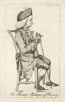 Sir Thomas Parkyns (1664–1741), known as the Wrestling Baronet, was a devotee of wrestling and organised an annual wrestling match in Bunny Park (prize a gold-laced hat). These matches continued until 1810. His book on the subject The Inn-Play: or, the Cornish Hugg-Wrestler was published in 1713 and reprinted many times.[18]