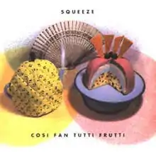 Cosi Fan Tutti Frutti is a 1985 album by the British new wave group Squeeze. It is the band's sixth album, and the first recorded since their breakup in 1982. It reunited songwriters Glenn Tilbrook and Chris Difford with drummer Gilson Lavis and keyboardist Jools Holland (now credited as "Julian"). Keith Wilkinson, who played bass on the 1984 Difford & Tilbrook album, joined Squeeze for the first time. He would stay with the band for over a decade, making him the longest-lasting bassist in Squeeze's history. Laurie Latham produced the album. The album peaked at number 31 on the UK Albums Chart.[2]
