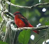 - ↑ Berv, J.S.; Prum, R.O. (2014). "A comprehensive multilocus phylogeny of the Neotropical cotingas (Cotingidae, Aves) with a comparative evolutionary analysis of breeding system and plumage dimorphism and a revised phylogenetic classification". Molecular Phylogenetics and Evolution. 81: 120–136. doi:10.1016/j.ympev.2014.09.001. PMID 25234241.
