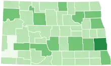 The Federal Information Processing Standard (FIPS) code, which is used by the United States government to uniquely identify states and counties, is provided with each entry.[1] North Dakota's code is 38, which when combined with any county code would be written as 38XXX. The FIPS code for each county links to census data for that county.[2]