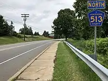 County Route 513 (CR 513) is a county highway in the U.S. state of New Jersey. The highway extends 66.83 miles (107.55 km) from Kingwood Avenue (Route 12) in Frenchtown to Lakeside Road (CR 511) in West Milford. South of Frenchtown, the road continues as Route 29. It is the third longest county route in New Jersey, following CR 519 and CR 527.