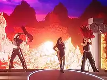 From as early as May 2021, Charli took on an evil, demonic or soulless persona while teasing and promoting the record, so as to play into a deal-with-the-devil idea.[52] George Griffiths of the Official Charts Company compared the concept to Marina's Electra Heart (2012).[53] Visuals for the album include "femme fatale powers" and a multitude of "dark spells and curses" as well as signature nods to both cars and car crashes. Several publications found references to the David Cronenberg films, mainly the 1996 film of the same name and Videodrome, the former of which is also an aesthetic inspiration.[54][55][56] Charli talked about the aesthetic themes and the reference to the Cronenberg film by saying, "Referencing Cronenberg is unavoidable when the album is called Crash. [...] For this album, I was exploring the idea of what the most sexualized, heightened, vampiric version of myself could be. And I think that also plays into the 'selling your soul' narrative [and] danger — it's very volatile, the image of this album. I think some people are really turned off by it, which is quite interesting, and some people love it. It's heightened sex, sexiness — that's where I was at. And I think that does relate back to Cronenberg's Crash because that book and that movie is about these people who want and feed off their favorite thing and will go to any length to feel this sexuality and connection."[57] In accordance to this statement, Under the Radar wrote in their review: "The intersection of violence, sexuality, and technology explored within the album's cover art calls to mind influential science fiction writer and cultural prophet J. G. Ballard's contentious 1973-released novel Crash—and, by extension, Cronenberg's 1996-released film adaptation. Deft studies of humanity's psychological and physical transformation alongside technological and cultural advancement, both novel and film reveal a world 'beginning to flower into wounds.' This merging of flesh and blood with steel and plastic is fully embodied within the album's production, which (mirroring Ballard's prose) applies a highly technical and intricately calculated approach, pristine melodies scrubbed of any discernible warmth or familiarity, courtesy of Charli XCX and her team."[58]