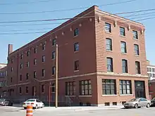 The buildings in the district continued to house a variety of businesses over the years. Although its ownership changed several times, the Crescent Macaroni and Cracker Company remained in operation until 1991. In 2003 The Alexander Company of Madison, Wisconsin started the process of converting several of the structures into loft apartment buildings.[5] The Crescent building and the former Rock Island freight house (also known as the Waterloo Mills building) were converted into 73 units in 2005 and are now known as the Davenport Lofts.[6] The Ewert and Richter warehouse buildings became a 56 unit complex that was completed in 2007 and is now known as 4th Street Lofts. The Kerker building was converted into 18 units in 2012 and is called the Kerker Lofts. That same year Restoration St. Louis, who had already renovated the Hotel Blackhawk and the Forrest Block in downtown Davenport, bought the Smith Brothers and Burdick Company building to convert into loft apartments,[7] which opened in January 2015 as the Market Lofts with 37 units.[8] In 2014 the Alexander Company converted the Sieg Iron building on Iowa Street into a 33 unit apartment building.[9] Y & J Properties completed a $6.5 million renovation of the Halligan Coffee Company building into 45 market-rate lofts in April 2015.[10] The following month the Crescent Electric Company building and the Sieg Iron Company building, contiguous buildings on East Fifth Street, received $3.1 million in historic tax credits from the state of Iowa. They are the last two buildings in the district to be renovated.[11] Renovations to the buildings were completed in the spring of 2018 and the 62 units opened as the Pershing Hill Lofts.[12]