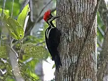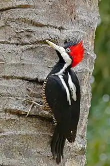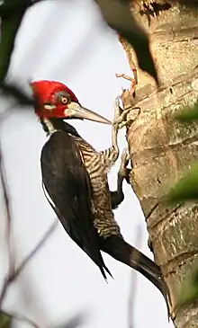 The crimson-crested woodpecker (Campephilus melanoleucos) is a species of bird in subfamily Picinae of the woodpecker family Picidae. It is found in Panama, Trinidad, and in every mainland South American country except Chile and Uruguay.