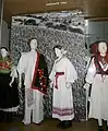 The Croats from Kosovo have a dress that has a more Dinaric style, having adapted many of the Vardarian style of dress into their traditional costumes. They are called Janjevci, derived from the villages the majority are from. Since most are descended from Dubrovnik traders seven centuries back, they have maintained certain elements of Dubrovnik style clothing that is reflected in their national dress.[7] Due to conflicts plaguing Kosovo over the years, many have migrated to Croatia, where a large cultural community has been set up in Zagreb, preserving the songs, dances, and culture of the Janjevci.[8]