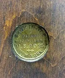 After 30 years of research, Wayne Kelly published his assessment of the first origins of crokinole, in The Crokinole Book,[7] Third Edition, page 28, which leaves the door open to future research and discovery of the origins of the game of crokinole: "The earliest American crokinole board and reference to the game is M. B. Ross's patented New York board of 1880. The earliest Canadian reference is 1867 (Sports and Games in Canadian Life: 1700 to the Present by Howell and Howell,[8] Toronto, MacMillan Company of Canada, 1969, p.61), and the oldest piece dated at 1875 by Ekhardt Wettlaufer.[9] Could Ekhardt Wettlaufer have visited friends in New York state, noticed an unusual and entertaining parlour game being played, and upon arrival at home, made an imitation as a gift for his son? After all, he was a talented, and no doubt resourceful, painter and woodworker. Or was it the other way around? Did Mr. M. B. Ross travel to Ontario, take note of a quaint piece of rural folk art, and upon return to New York, put his American entrepreneurial skills to work - complete with patent name - on his new crokinole board? As the trail is more than 100 years old and no other authoritative source can be found, it appears, at the moment, that Eckhardt Wettlaufer or M. B. Ross are as close as we can get to answering the question WHO (made the first crokinole board.)"