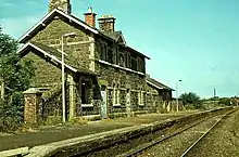 ![]() The station building on 15 August 2006 having lost some of its original features including some chimneys. There is a level crossing here. | |