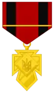 The Cross of Merit (Ukrainian: Хрест Заслуги) was an award of Ukrainian Insurgent Army. It awarded for distinguished services to the state and people of the Ukrainian army. The Order was instituted on January 27, 1944, by the Ukrainian Supreme Liberation Council leaders, Roman Shukhevych and Dmytro Hrytsai.