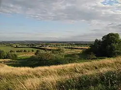 It is 6 miles (9.7 km) north-west of Royston, 10 miles (16 km) south-west of the county town of Cambridge and 44 miles (71 km) north of London, a short distance west of what was the Roman Ermine Street, now the A1198 road. The village of Arrington is east of Croydon, Wendy is south-east and Hatley north-west.[3] The River Cam (or Rhee) runs along the southern boundary of Croydon parish.[5] The soil at Croydon is 'clayey' with a chalk and gault subsoil.[4] The parish ranges from 22 metres, by the river, via the foot of a chalk down at 45 metres, to a northern plateau reaching 82 metres above sea level.[5] It covers an area of 1,103 hectares.[11]