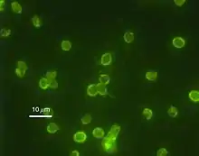 Immunofluorescence image of C. parvum oocysts