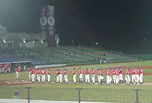 Cuban team lining up prior to the gold medal game in the 2006 Intercontinental Cup against the Netherlands