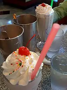 During that same time frame, grain-feeding of cattle during low pasture months made milk increasingly available year-round. The invention of milking machines lowered production costs. Pasteurization, homogenization, evaporation, condensation, and refrigeration along with glass milk bottles, wax-paper cartons, and then plastic bottles made milk increasingly available and safe for urban consumers.[63] Milk became a staple food item and an increasingly important ingredient in American cuisine. Examples include the root beer float and the milkshake.