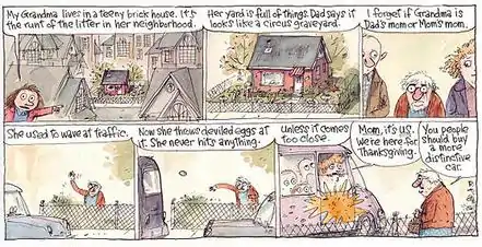 {{cite web}}: Missing or empty|url=(help) - ↑ Thompson, Richard. "Comment on Cul de Sac Strip for September 22, 2012". Retrieved 23 September 2012.