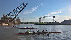 As Cleveland emerged as a major manufacturing center, the river became heavily affected by industrial pollution, so much so that it caught fire at least 14 times, most famously on June 22, 1969, helping to spur the American environmental movement.[10][11] Since then, the river has been extensively cleaned up through the efforts of Cleveland's city government and the Ohio Environmental Protection Agency (OEPA).[12] In 2019, the American Rivers conservation association named the Cuyahoga "River of the Year" in honor of "50 years of environmental resurgence".[13][14]