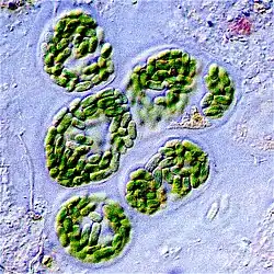 Microscope image of Cylindrospermum, a filamentous genus of cyanobacteria
