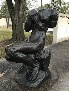Inspired by fragments of Greek art[2] and incomplete work by Michelangelo,[1] Rodin modeled a small study of a headless, seated woman. Following a scandal in 1877 when Rodin was wrongly accused of casting The Age of Bronze from life, the artist usually preferred to make sculptures that were smaller than life.[3] Rodin's model was one of his favorites, Anna Abruzzesi, one of a pair of sisters he often used.[2][3] Art critic Georges Grappe dated the sculpture to 1889 and stated without providing a source that it was a study for The Gates of Hell.[4]