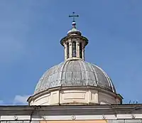 There are two paintings on the side walls of the vestibule by Daniel Seyter, the Martyrdom of St Catherine of Alexandria and the Martyrdom of St Lawrence. The first versions of these were painted by the Viennese artist between 1685 and 1686 using an unusual technique, oil on plaster. The paintings rapidly deteriorated and the best preserved fragments were sent to Massa by the cardinal to his nephew, Duke Carlo II Cybo-Malaspina in 1697. They were substituted with traditional oil paintings on canvas by the same Seiter between 1698 and 1700. The compositions remained similar.[5]