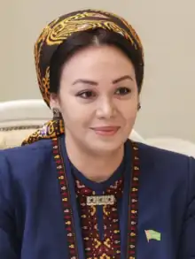 Dünýägözel Akmuhammedowna Gulmanowa (born 14 January 1989) is a Turkmen politician currently serving as speaker of Turkmenistan's parliament.[1][2]