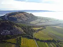 Děvín (German: Mayden Berg) is a double peak mountain in the Pavlov municipality in the South Moravian Region of the Czech Republic. With an elevation of 550 metres (1,800 ft), it is the highest mountain of the Pavlov Hills within the Mikulov Highlands, and of the Pálava Protected Landscape Area.