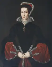 Elizabeth Blount was born in Burton upon Trent, where her family was prominent.[1][2] Her parents were the M.P. Walter Blount of Nether Hall, Burton and later of Blount's Hall, Staffordshire, and his wife Margaret or Mary.[3][4] Her first marriage was to Anthony Beresford of Thorpe, Derbyshire. She then married Sir Thomas Pope, a wealthy landowner who founded Trinity College, Oxford. Pope's death left Elizabeth a rich widow and she afterwards married Sir Hugh Paulet.[4] She died in 1593 and was buried, with Thomas Pope and his second wife Margaret, in a tomb she had built in the chapel at Trinity College.[5]