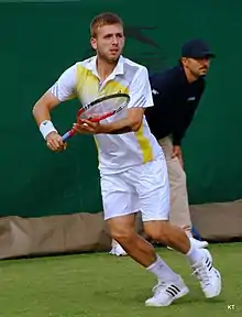 Daniel Evans (born 23 May 1990) is a British professional tennis player from England.[2] He has been ranked as high as world No. 21 in singles by the Association of Tennis Professionals (ATP), which he achieved on 7 August 2023, and is the current British No. 2 in singles.[3] He reached a career-high ranking of world No. 52 in doubles on 26 April 2021. In 2015, he formed part of the winning British Davis Cup team.