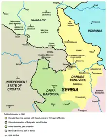Danube Banovina or Danube Banate (Serbo-Croatian: Dunavska banovina / Дунавска бановина), was a banovina (or province) of the Kingdom of Yugoslavia between 1929 and 1941. This province consisted of the geographical regions of Syrmia, Bačka, Banat, Baranya, Šumadija, and Braničevo. The capital city of the Danube Banovina was Novi Sad. The province was named after the Danube River.